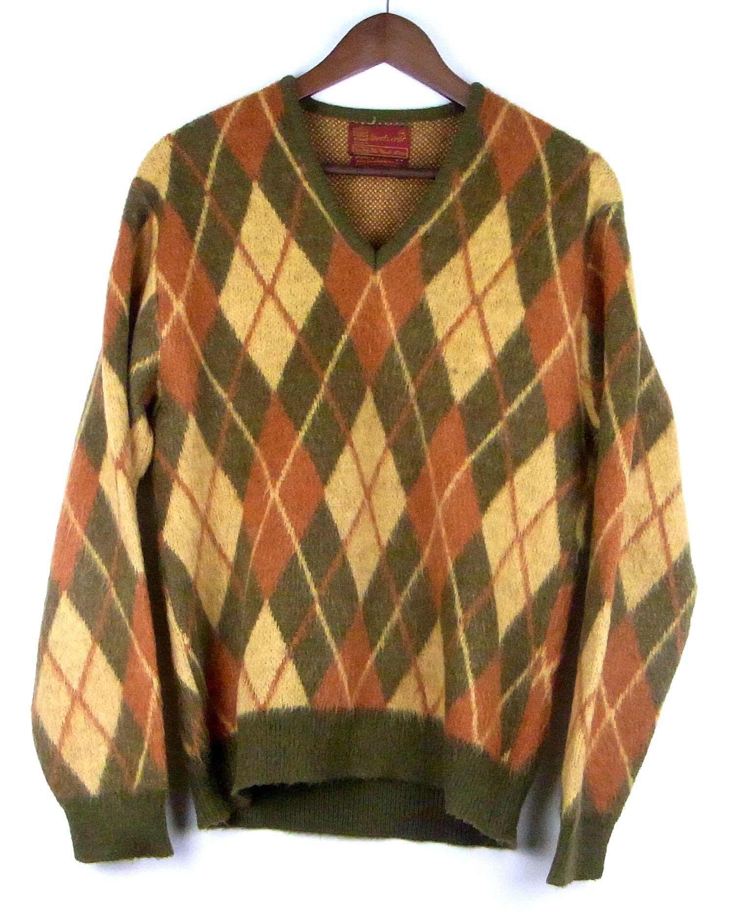 シアーズのモヘア混アーガイル柄Vネックニットです